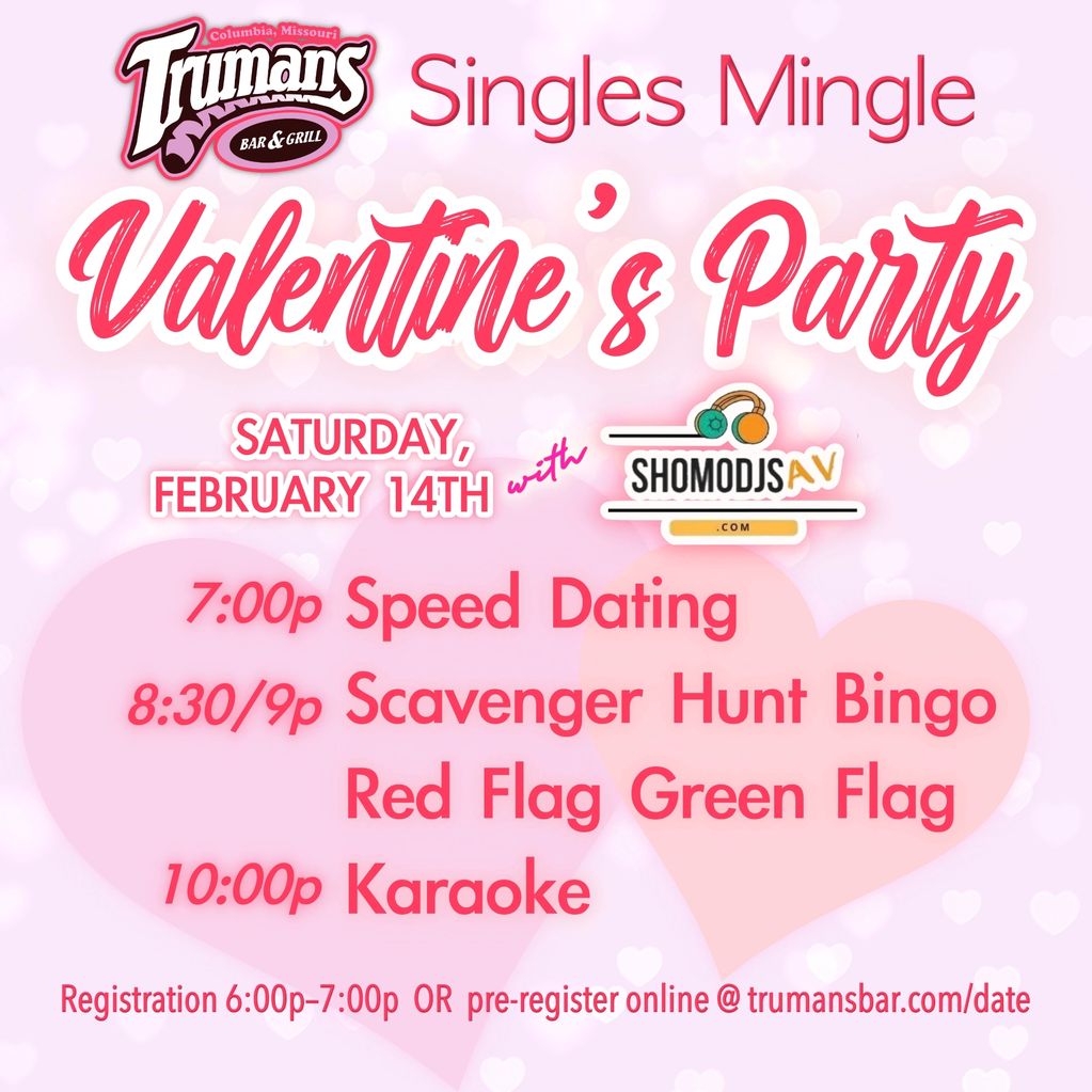 Join us Saturday, February 14th for the best Valentine's Party in Columbia! We'll kick off at 7:00pm with Speed Dating, followed by Scavenger Hunt Bingo, a bar-wide game of Red Flag/Green Flag, and some fantastic Karaoke! DJShowMo will kick the vibe off and keep the party going all night!